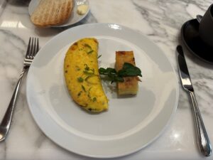 マサラオムレットにはオニオンやトマト、コリアンダーなどの香辛料が入っており、横にはポテトのキッシュのようなものが添えてありました。